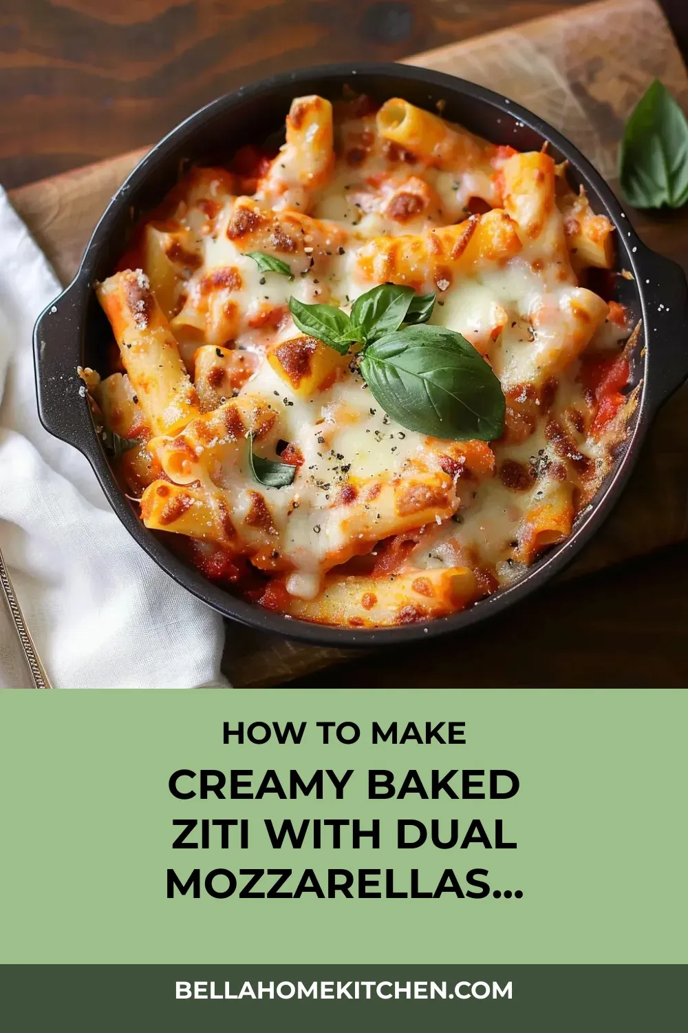 Creamy Baked Ziti with Dual Mozzarellas and Parmesan Sauce