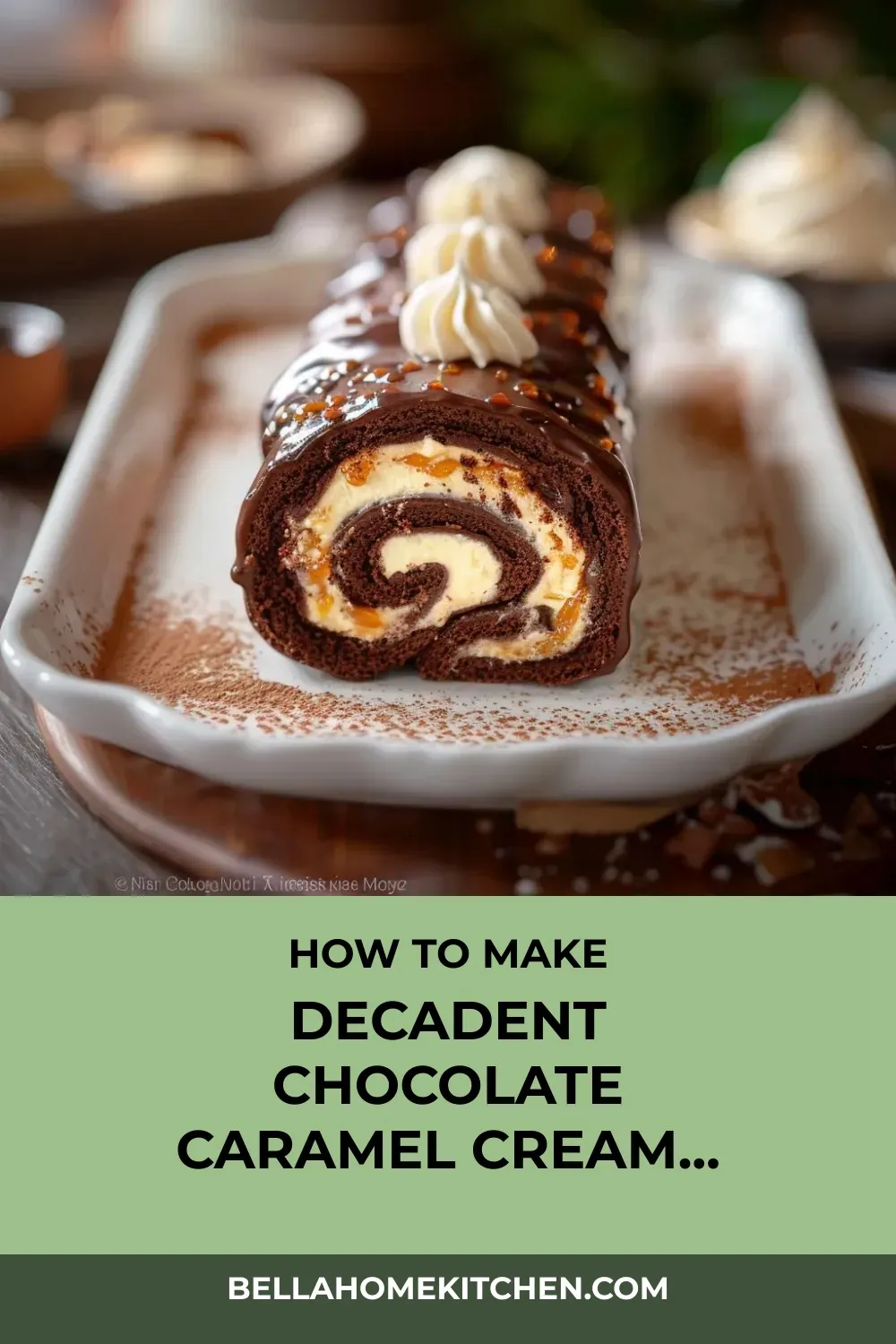 Indulge in the mesmerizing spiral of rich chocolate embracing salted caramel cream in this elegant yet surprisingly simple Chocolate Caramel Cream Roll.
