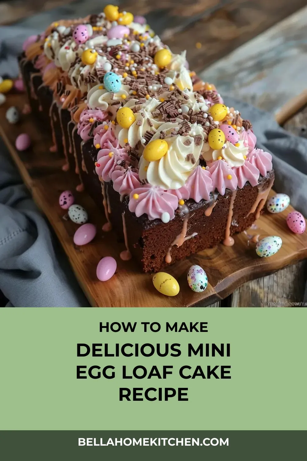 The beauty of this Mini Egg Loaf Cake lies in its ability to effortlessly blend indulgent flavors and playful aesthetics. With a tender crumb that stays moist for days, thanks to the oil-based chocolate cake, and a visually stunning tri-colored buttercream frosting, this dessert is a true showstopper. Perfect for Easter gatherings or any springtime celebration, this Mini Egg Loaf Cake is bound to steal the spotlight on your dessert table. Get ready to create a treat that not only tastes heavenly but also brings a touch of Easter magic to your home.