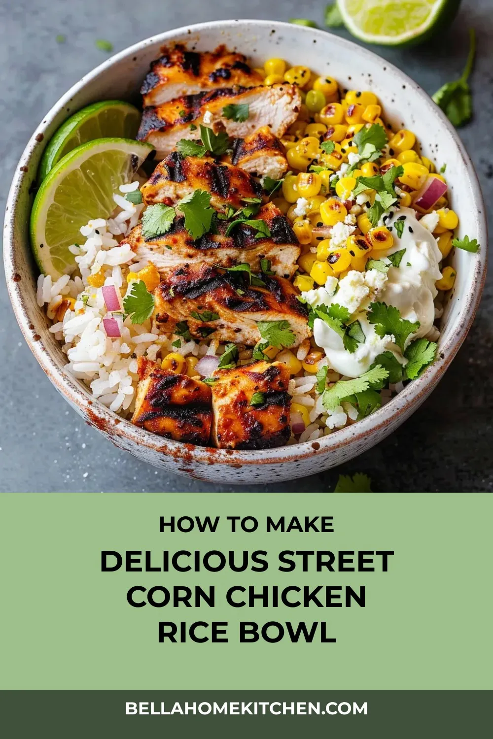 Savor the vibrant flavors of Mexican street corn with tender lime-marinated chicken thighs and creamy charred corn in this Street Corn Chicken Rice Bowl.
