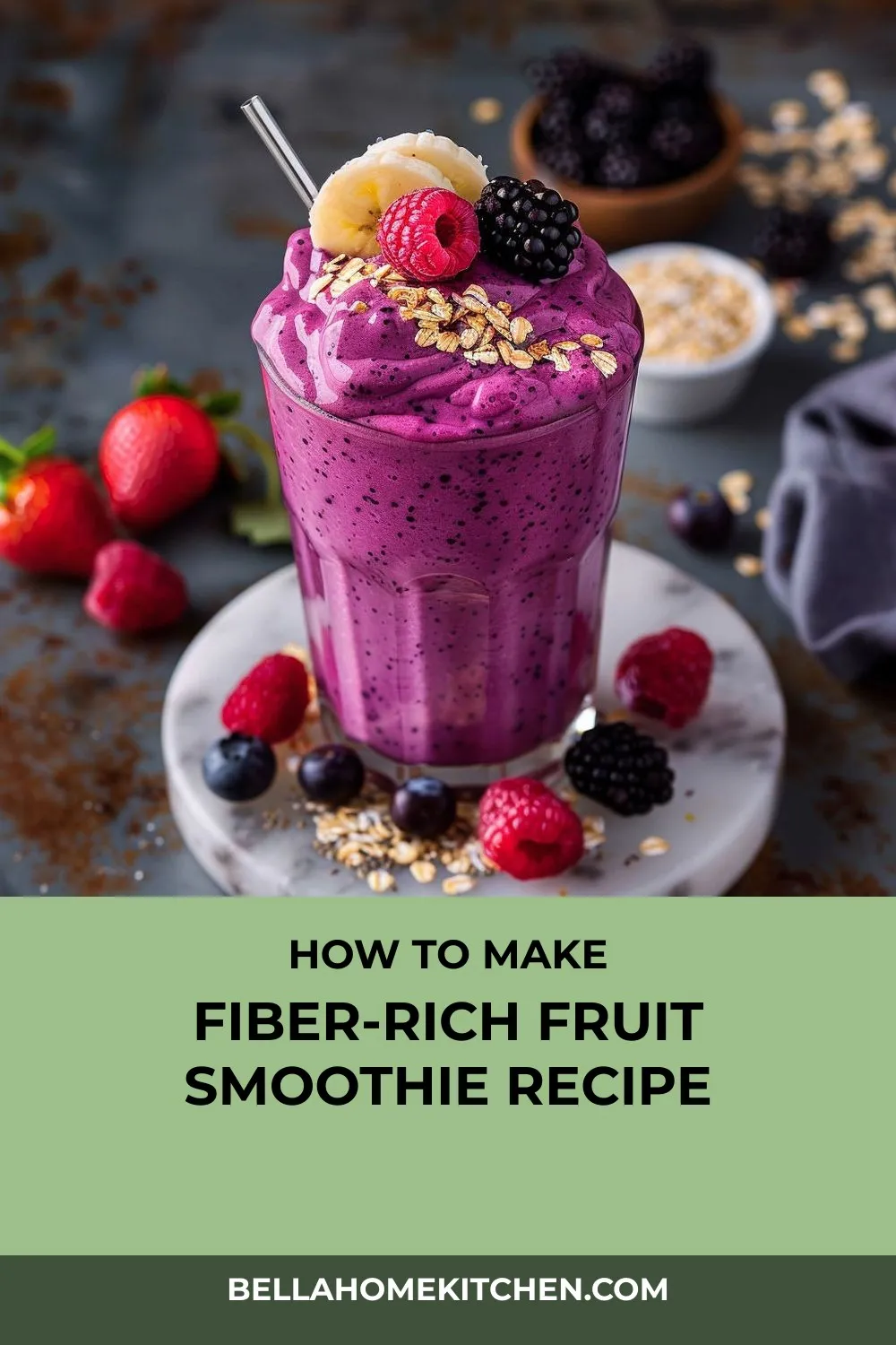 “Kickstart your day with this High Fiber Fruit Smoothie, packed with oats, chia seeds, and berries for a delicious and filling breakfast treat!”