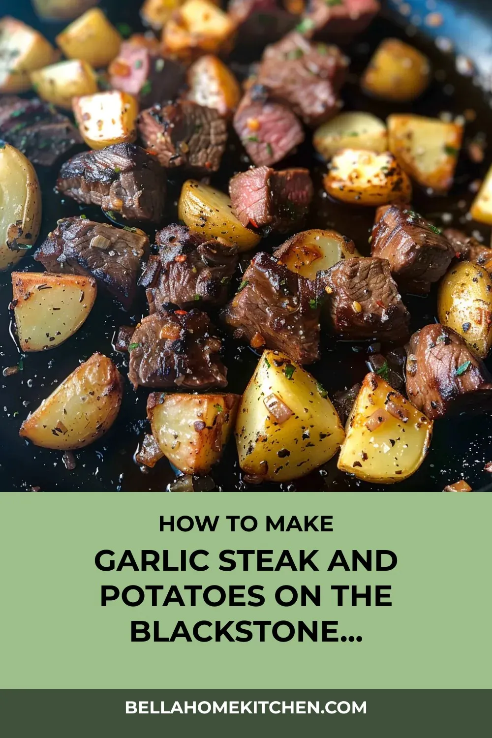 “Transform simple ingredients into a restaurant-worthy Blackstone Garlic Steak and Potatoes dish, ready in under 20 minutes, featuring tender steak bites and crispy golden potatoes.”