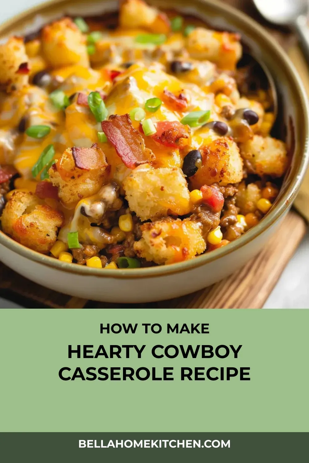 For a fun and unique way to serve Cowboy Casserole, try creating individual mini cowboy casserole cups by layering the tater tots, beef mixture, and cheese in muffin tins. This not only makes for a cute presentation but also allows for easy portion control and convenient serving at parties or potlucks. Top each cup with a dollop of sour cream and a sprinkle of chopped scallions for a colorful and flavorful finish.