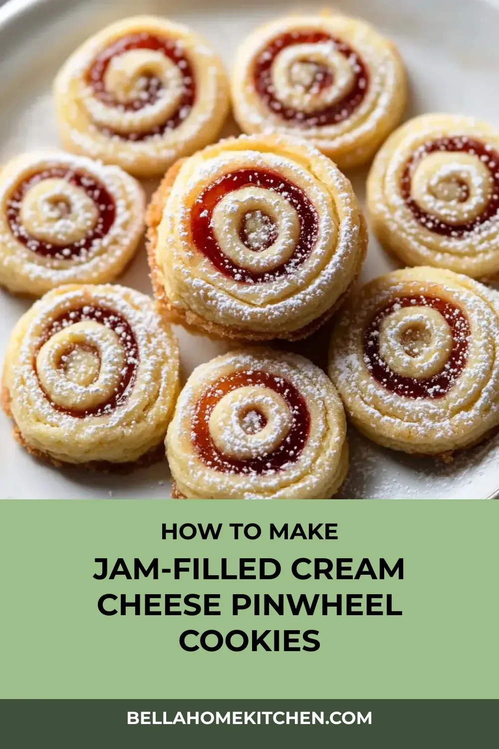 Whether you’re baking these cookies for a festive gathering or a cozy afternoon at home, remember that each step, from rolling out the dough to dusting with powdered sugar, is an opportunity to create something beautiful. Embrace the process, enjoy the moments in the kitchen, and savor the sweet rewards of your efforts. Cream Cheese Jam Pinwheel Cookies are more than just a dessert; they are a reminder of the joy that baking can bring to our lives. Happy baking, and may these cookies add a touch of magic to your holiday season!