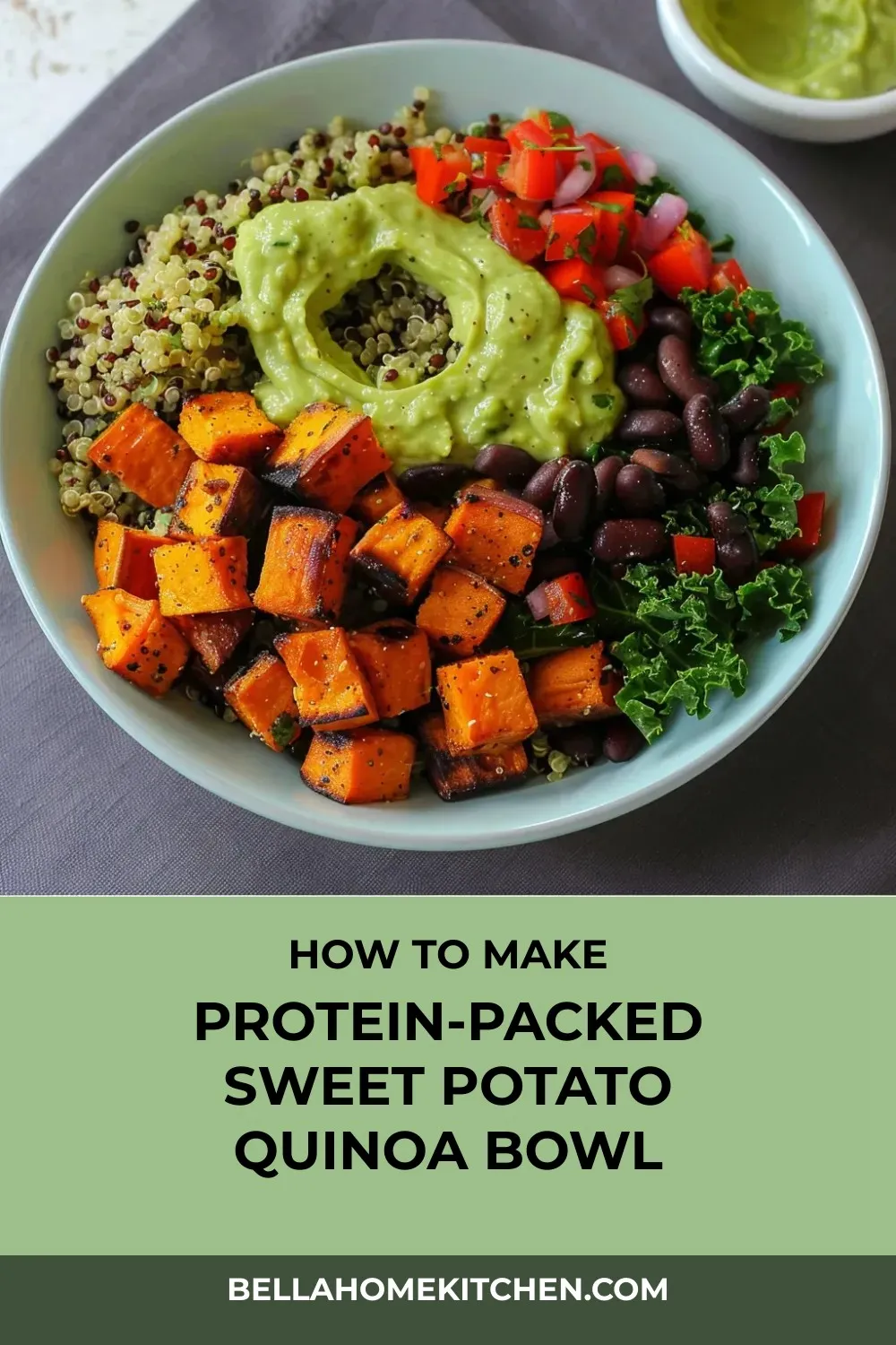 Looking for a nutritious and delicious meal that will leave you feeling satisfied and energized? Look no further than this Sweet Potato Quinoa Protein Bowl. Packed with roasted sweet potatoes, fluffy quinoa, sautéed kale, black beans, and red peppers, this wholesome bowl is a flavor explosion waiting to happen. And let’s not forget that creamy avocado lime dressing that ties everything together perfectly.