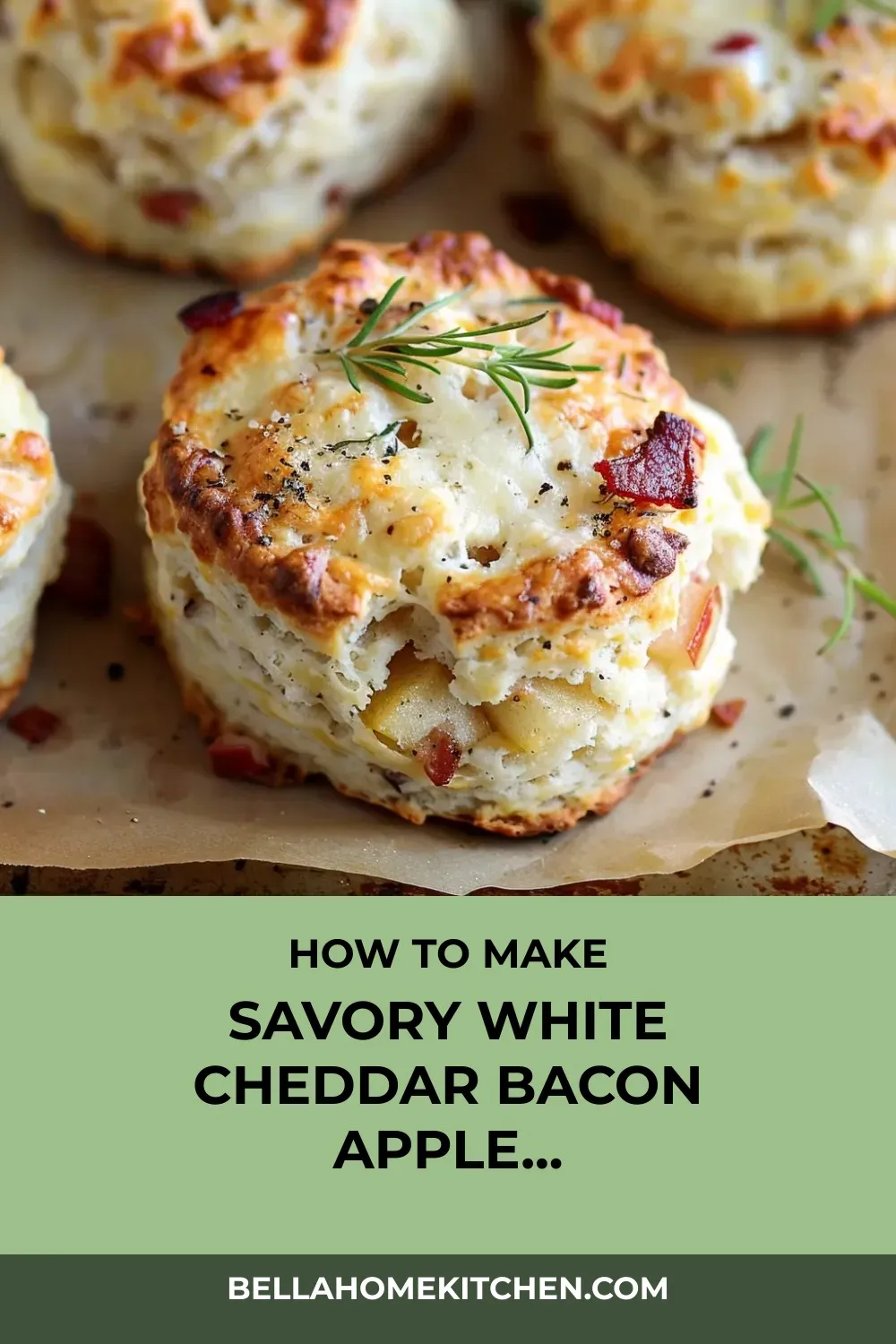 In conclusion, these White Cheddar, Bacon, and Apple Biscuits are a delightful combination of flavors that will make any meal feel special. The aroma of rosemary, the savory bite of bacon, and the subtle sweetness of apples all come together in a flaky, tender biscuit that is sure to impress. Whether you’re enjoying them for breakfast, brunch, or as a side dish, these biscuits are a versatile treat that will quickly become a favorite at your table.