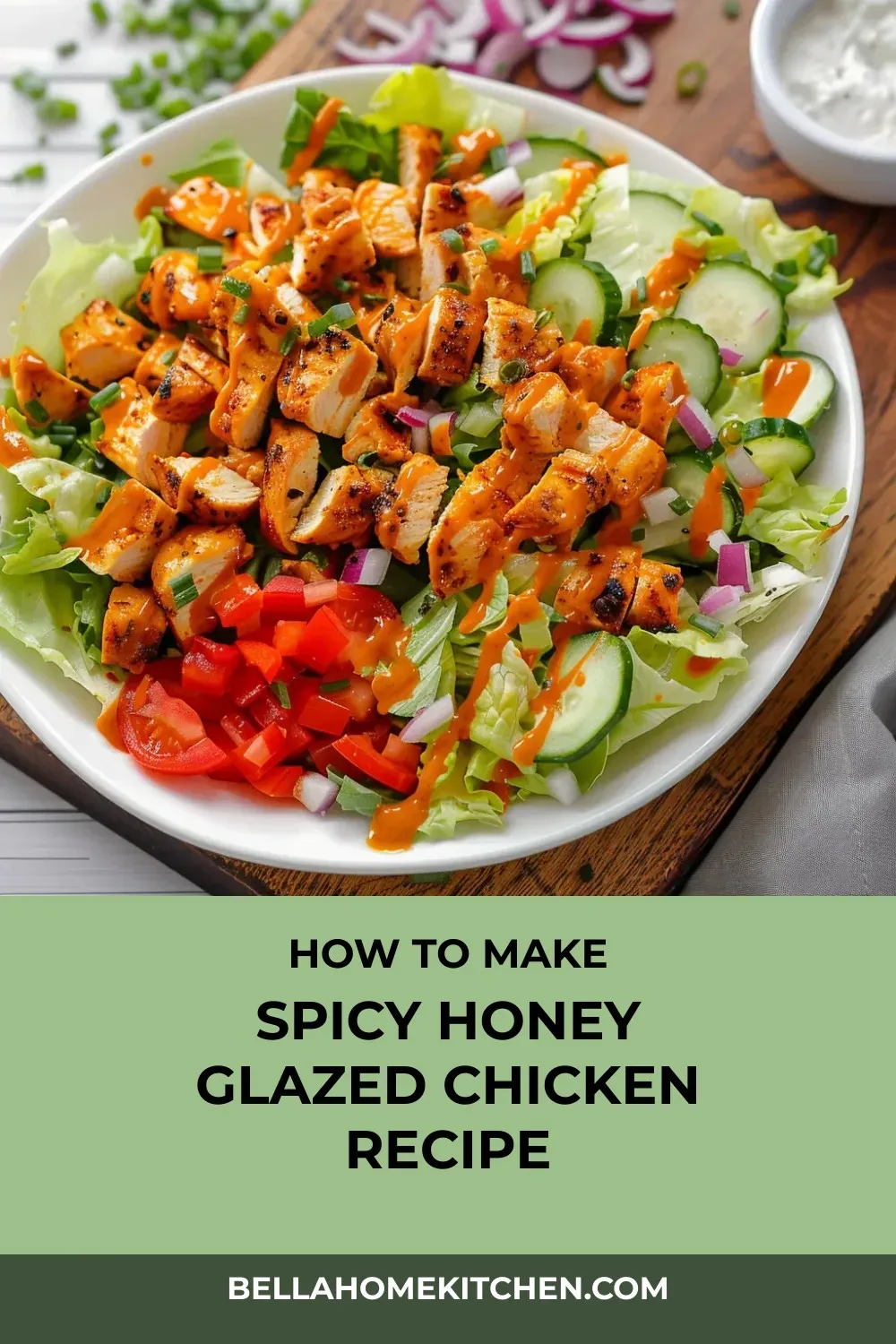 Spice up your salad game with this Honey Hot Chicken Delight; a perfect blend of sweet honey garlic sauce and spicy buffalo flavors over crisp veggies.