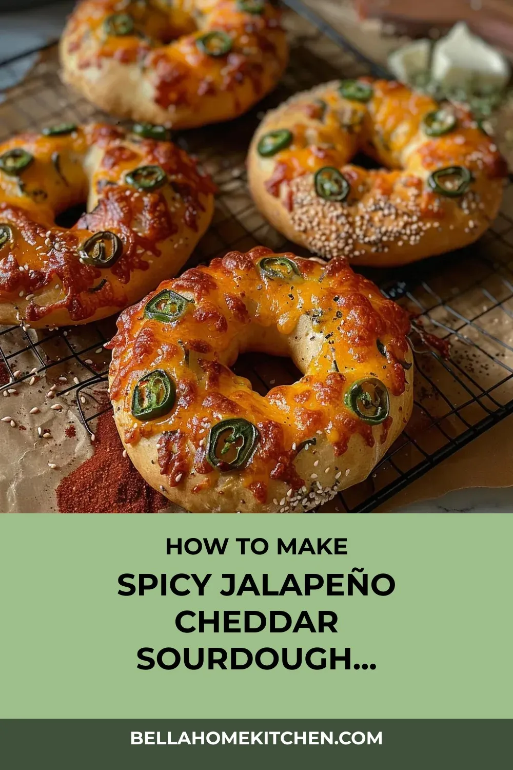“Transform your breakfast with Jalapeño Cheddar Sourdough Bagels, a harmonious fusion of tangy sourdough, sharp cheddar, and spicy jalapeños for a truly extraordinary flavor experience.”