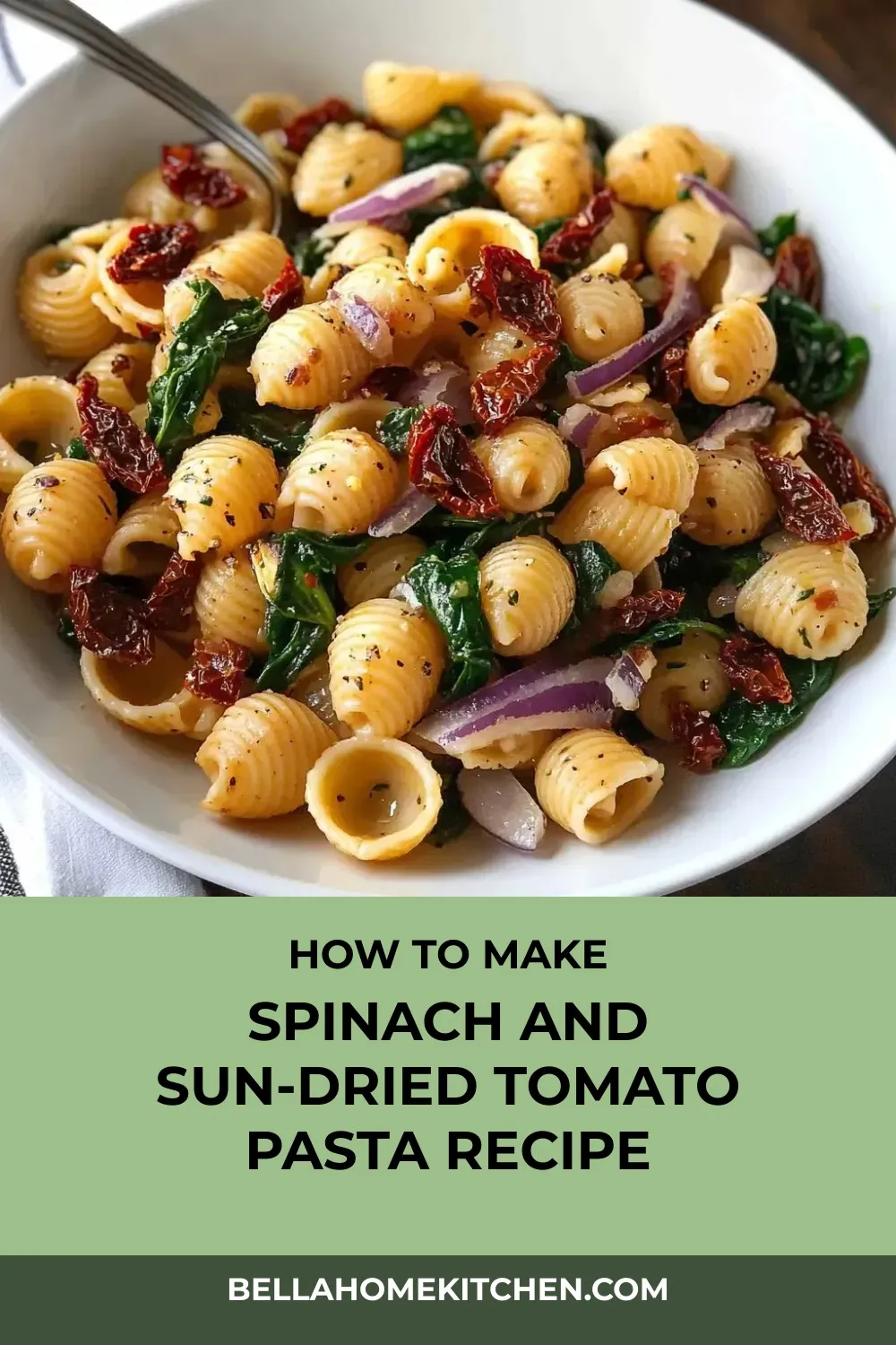 In conclusion, Pasta with Spinach, Onions, and Sun-dried Tomatoes is a delightful dish that proves you don’t need hours in the kitchen to enjoy a flavorful and satisfying meal. The combination of sweet sun-dried tomatoes, caramelized onions, and vibrant spinach creates a harmony of flavors that will have you coming back for seconds. Whether you’re looking for a quick weeknight dinner or a simple yet impressive meal to serve guests, this recipe is sure to become a favorite in your repertoire. So grab your favorite pasta, gather your ingredients, and get ready to enjoy a delicious bowl of Pasta with Spinach, Onions, and Sun-dried Tomatoes that will leave everyone asking for more!